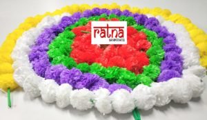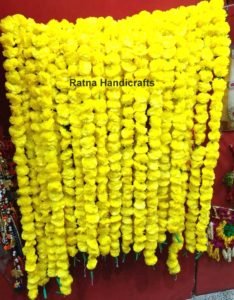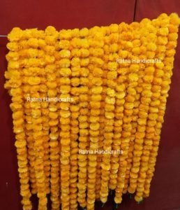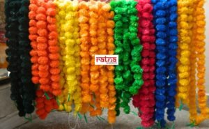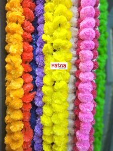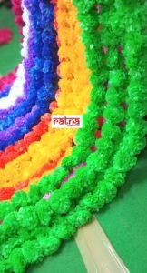 Colors in these Marigold Garlands are: Orange, Yellow, Red, Pink, Cream, Green, White & many more…